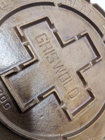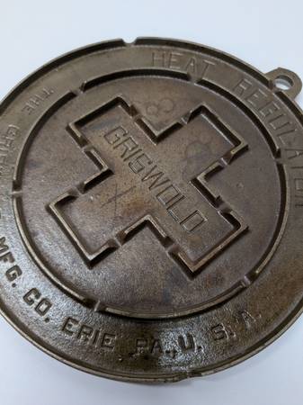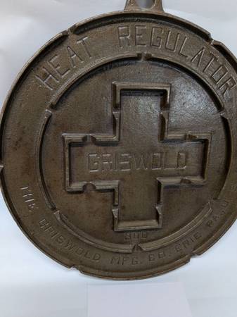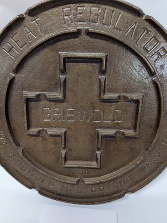 Rare hear regulator made by Griswold. A must have for a true collector. Hard to find. This will display nicely. Could use a cleaning or a recoat of seasoning. These are getting hard to find in good shape. Please look at the pictures. They are part of the description. I have lots more Griswold listed. Message me with any questions.