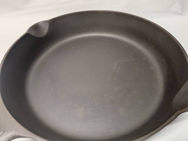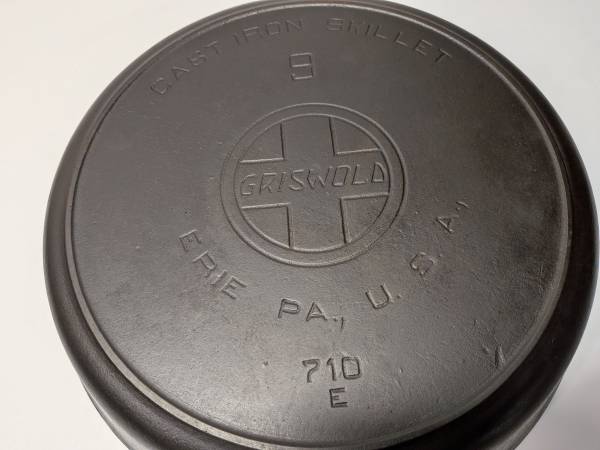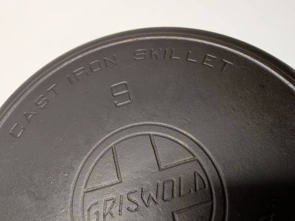 Nice Griswold #9 skillet. The #9 is a nice size for two steaks. Perfect for eggs, bacon or pancakes. It sits nice and flat, does not wobble or spin. Could use another seasoning. Nice shape for its age. I have more listed. Message me with any questions.