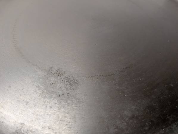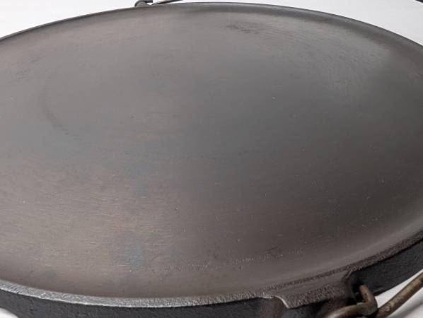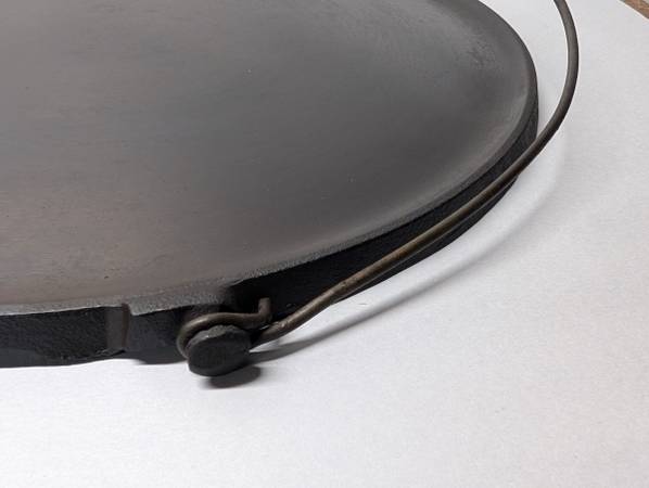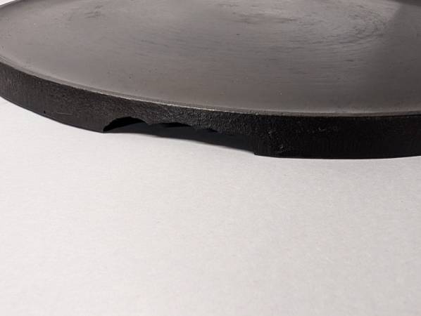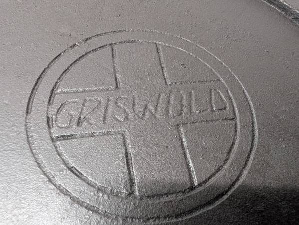 There is a small piece missing. It does not affect the cooking process when in use. This is hard to find. Slant logo means it's an earlier product. The smooth surface. Perfect for pancakes and camping. This would make a great gift! Please look at the pictures. Message me with any questions.