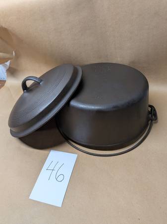 Wagner ware Dutch oven Nice shape Nice coat Heavy Duty Has a slight wobble. Perfect for baking bread, chilli and more! Great for camping. Overall a nice piece that will make a nice gift. Please look...
