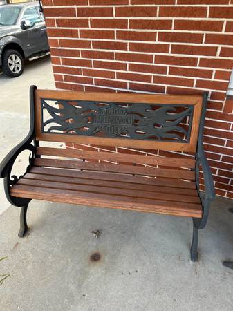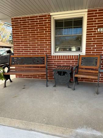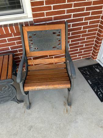 very nice 3 piece outdoor furniture. heavy cast iron and oak boards.