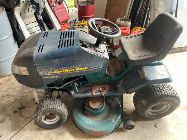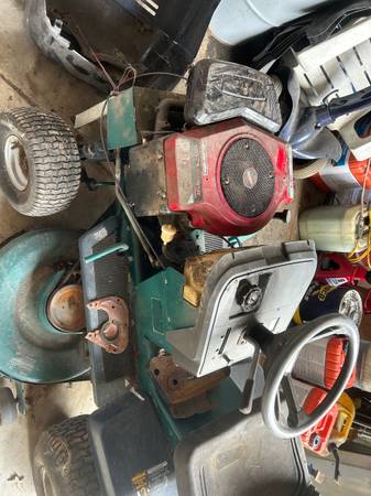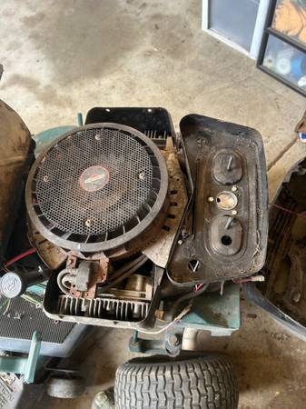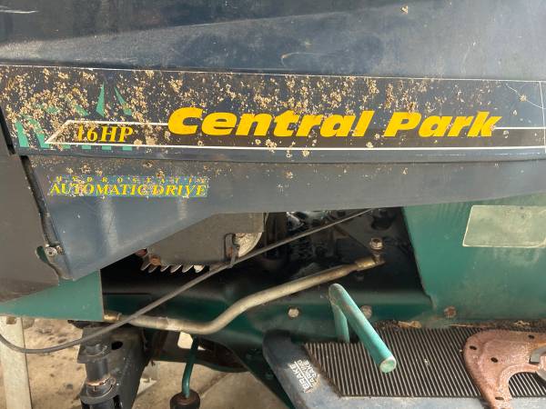 16 hp two cylinder Briggs and Stratton engine Central Park lawn mower for parts or can be fixed engine was running good parked for few years inside $100 location paw paw Il 61353