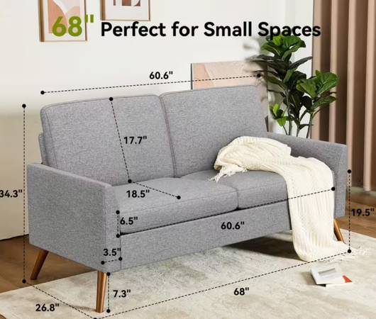 BRAND NEW White Loveseat Sofa, 68", easy set-up, still in packaging, can not open to inspect, dimensions noted on the picture, FIRM PRICE