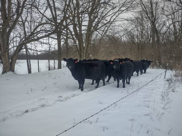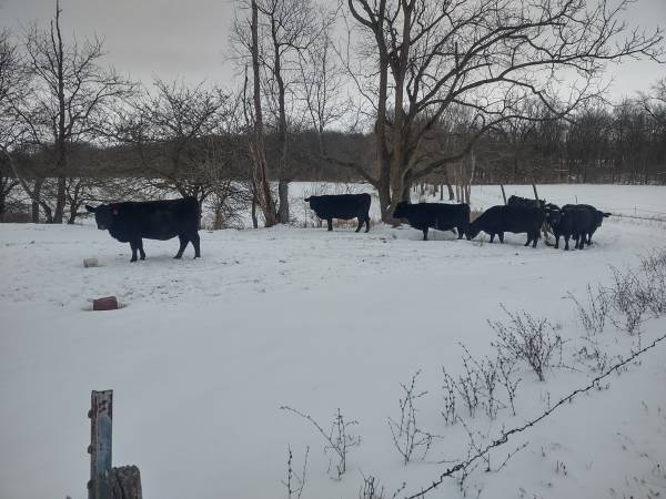 13 blk and bwf cows, most are 3-4 yrs old, preg checked , had all shots, bred blk angus bull, start calving feb. $3,650.00 ea. downs ill. ph