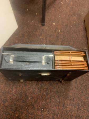 Antique Korona camera with case and plates as pictured. Please serious inquiries only- would consider best reasonable offers selling in as found estate find condition.. know nothing about cameras