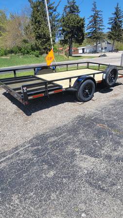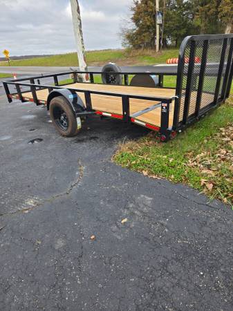 14ft is 2700. spare tire option 150.00 3ft ramp[less wind resistant]Spring assist dovetail[2ft] nice easy loading.all Led lights,powder coated,,not angle iron,made of channel,must see to appreciate,some trades but NO Aluminium,,309 825 2452 for app Bills cars Lake Bloomington