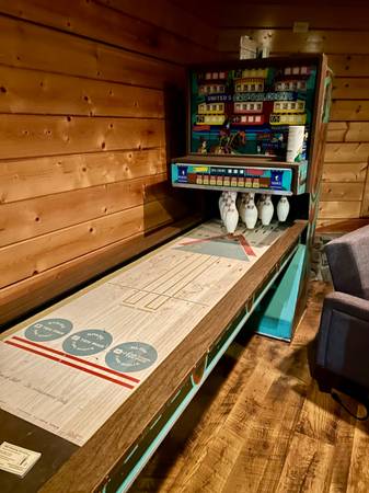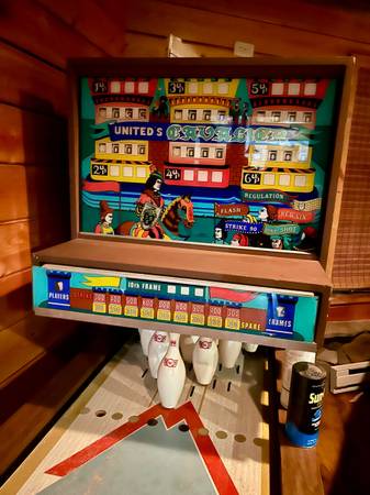 Vintage bowling game. Works great! It lights up and keeps score. Pin reset automated. Pick Up ONLY .